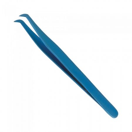 Eyelash Tweezers for Pickup Volume Lashes, Stainless Steel, Blue Color Plasma Plated.